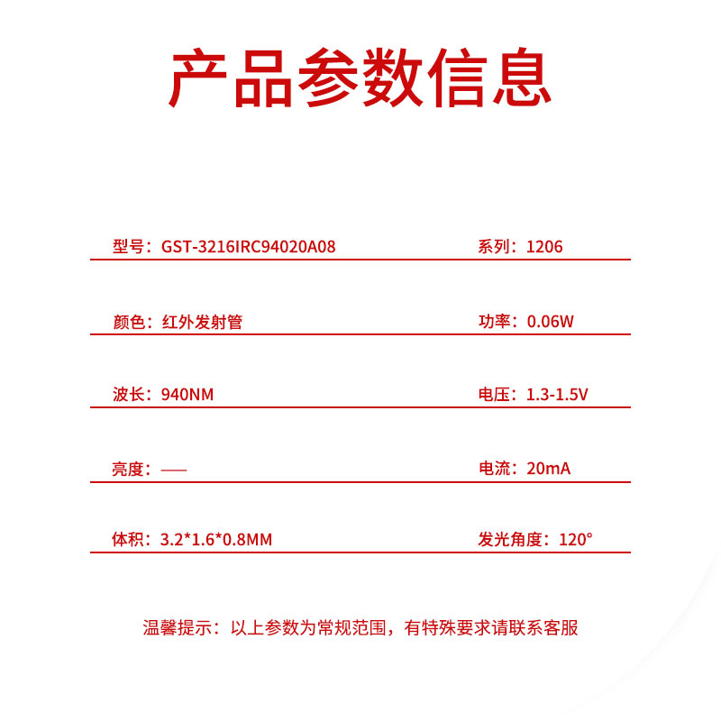 贴片LED灯珠发光二极管1206红外发射管940NM 940NM14mil超高亮...