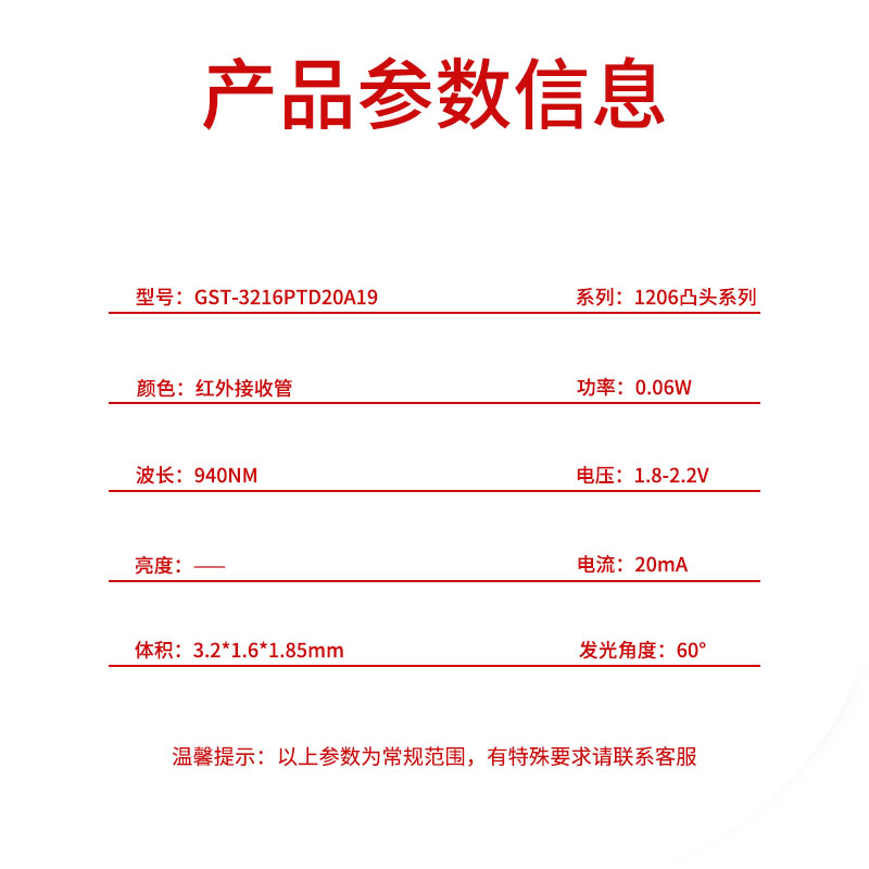 贴片LED灯珠 1206凸头光敏接收管黑面940NM带透镜红外遥控安防监...
